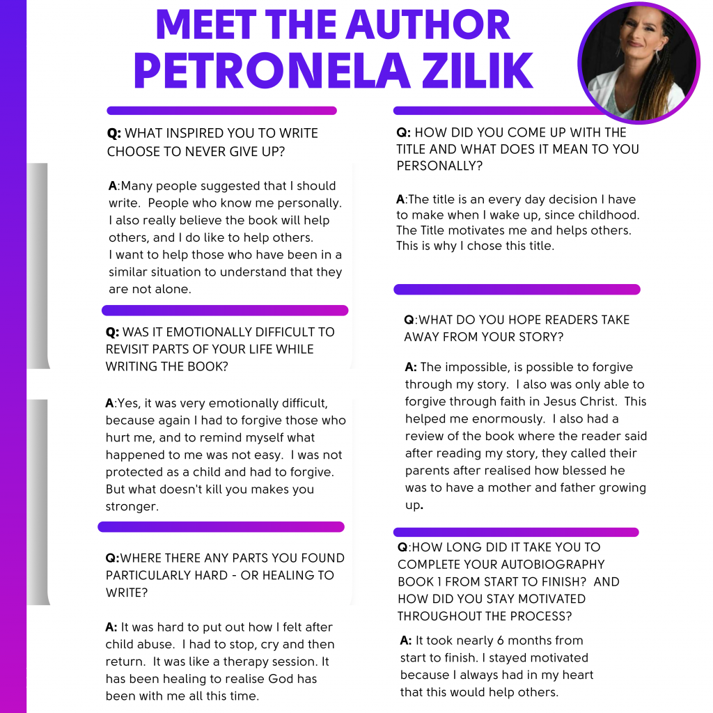 Choose to Never Give Up is a raw, honest journey of resilience, forgiveness and faith. For anyone who feels broken or alone, this book is a reminder: there is still hope, and your story isn’t over.